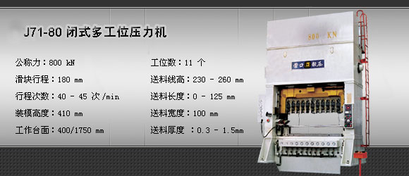 J71 - 80 閉式多工位壓力機 技 術 參 數